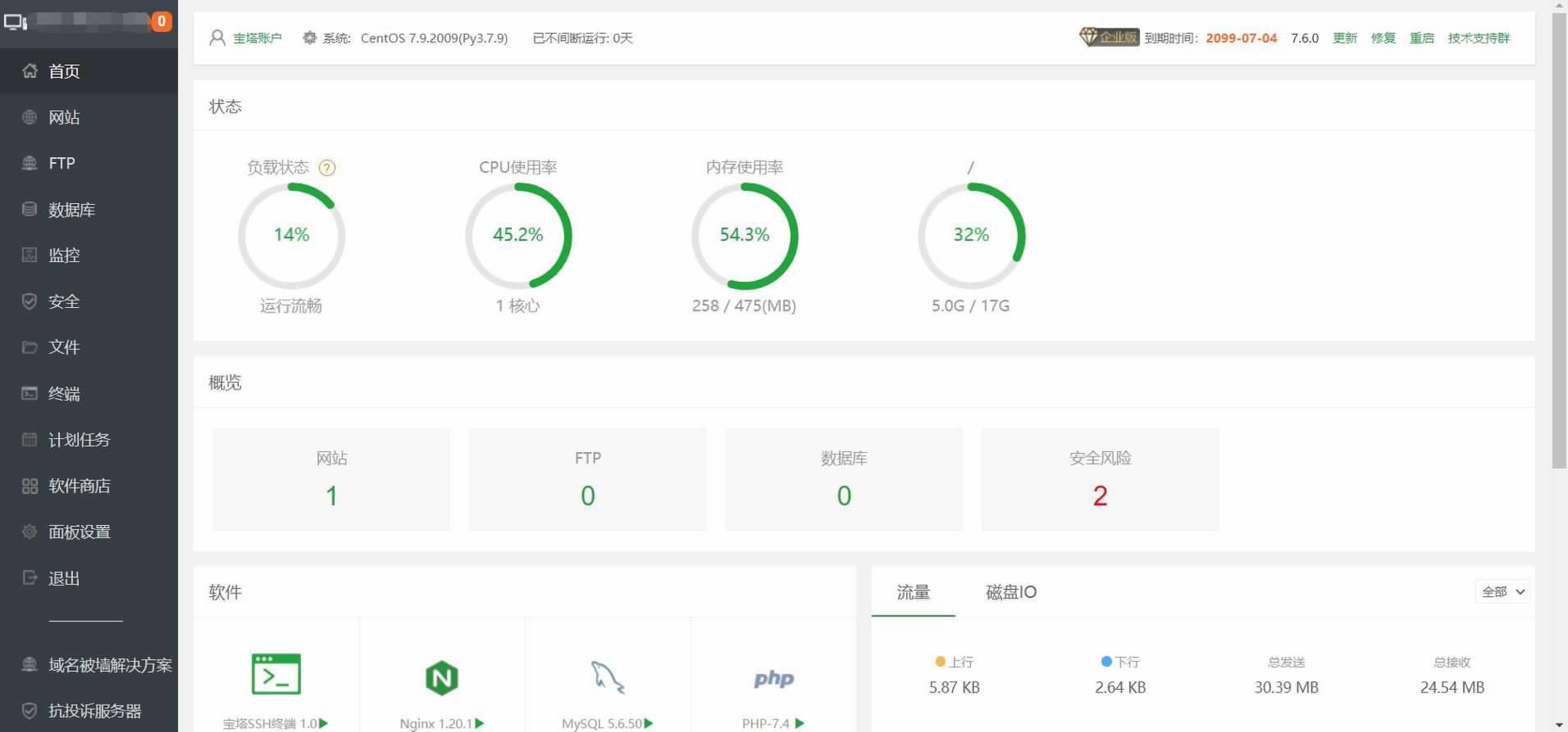 CentOS 7.6+、Ubuntu18.04+、Debian10.0+,确保是干净的操作系统,没有安装过其它环境带的Apache/Nginx/php/MySQL/pgsql/gitlab/java(已有环境、网站在运行的不可安装)